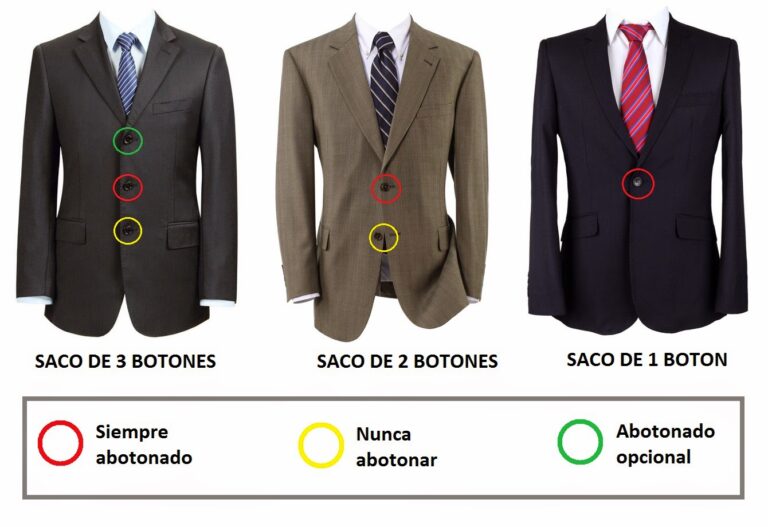 De acuerdo con el número de botones del saco, se aplica el método “Siempre, Nunca, A veces”, como se muestra en la imagen. Fácil y rápido.